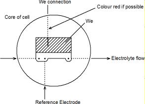 Contact to the working electrode is made from above so that electrodes as films on non conducting substances are accessible. These cells are designed to allow the user to introduce and/or change the elctrolyte quickly and even to flow the electrolyte through the cell. Reference is provided through an external pocket connected by 1/16" PTFE tubing to the cell body. Variants of the cell incorporating a water jacket to control the temperature have also been developed. Special features of all these cells include very short working distances and minimal dead space. They have also proved to be very reliable. In some examples more than 200 series of experiments have been completed before overhaul was required.